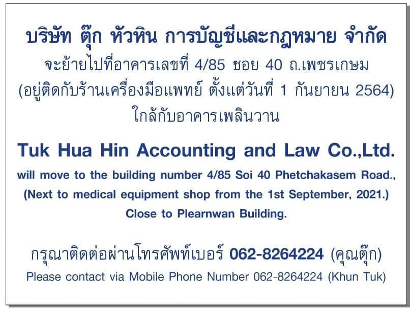 Providing accounting service and consulting service regarding accounting and tax, filling basic document for accounting records, analyzing list of document for accounting records of income and expense, adjusting entries and accounting statement as prescribed by Accounting Act and the Revenue Department,...