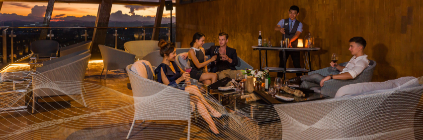 At THE SKY, you can relish the unmatched sunset and star-gazing experience from the comfort of a cosy indoor sofa-booth and lounge seating, or enjoy the popular Sky Deck tables outdoors. With live DJs setting the mood, this rooftop bar in Hua Hin is the perfect spot to see and be seen, offering a truly unforgettable experience.